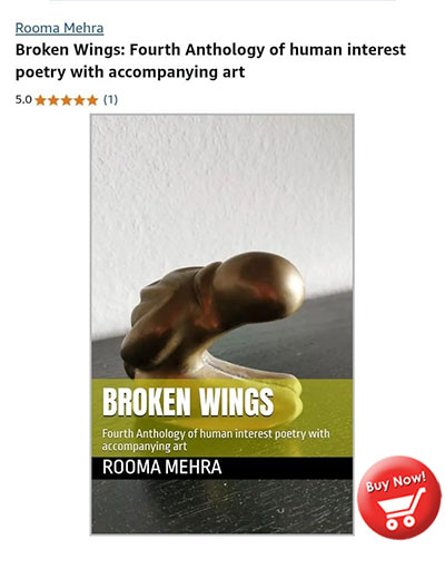 Rooma Mehra has had 11 solo shows of her paintings, reliefs and sculptures. Her artworks are found in private & permanent collections including in NGMA, New Delhi, Lalit Kala Akademi, New Delhi, Arte Antica Gallery, Canada and individual collections in Switzerland, U.S.A. Denmark, Austria, Spain and Japan. She is also a poetess of repute.